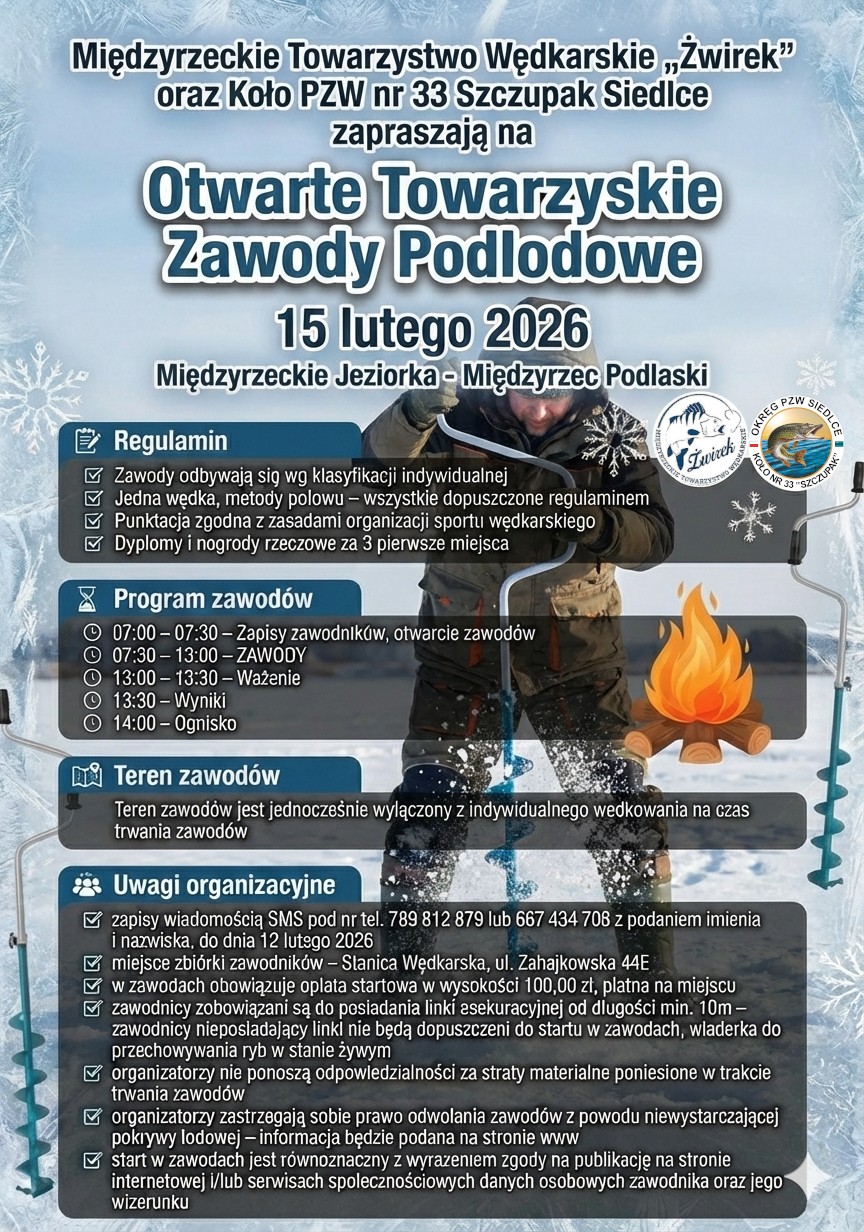 • organizatorzy zastrzegają sobie prawo odwołania zawodów z powodu niewystarczającej pokrywy lodowej – informacja będzie podana na stronie www.