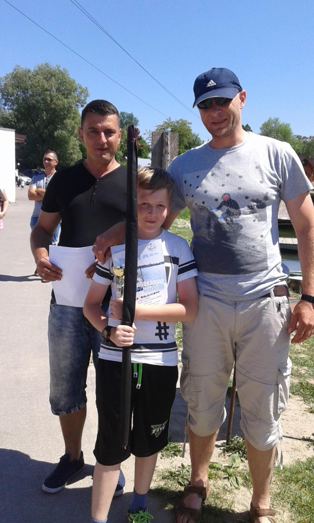 W niedzielę o godzinie 10 rozpoczęły się zmagania najmłodszych adeptów wędkarstwa wspomaganych przez swoich rodziców i opiekunów. Na zwycięzców czekały dyplomy, puchary i nagrody rzeczowe w postaci wędzisk, a na wszystkich uczestników grill. Ostatecznie w zawodach zwyciężył Szymon Borowik (780 g) przed Jakubem Bieleckim (720 g) i Mają Pazdan (680g). Maja była jedyną dziewczynką startującą w zawodach i był to jej pierwszy start w takich zawodach. Zwycięzcom gratulujemy.